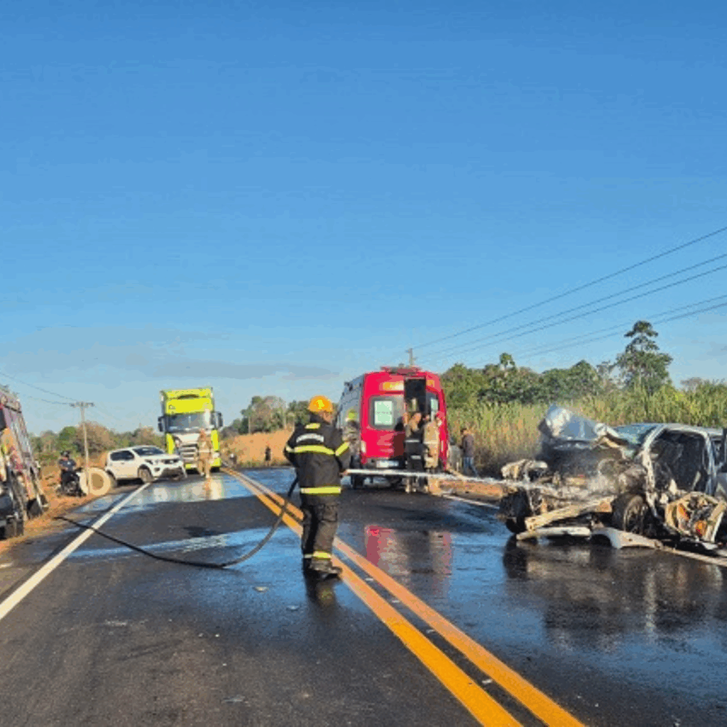 De acordo com apuração da reportagem, o acidente envolveu dois veículos de passeio — um Fiat Siena (placa OBV-5704) e um Toyota Yaris (placa QVO-5D29) — que teriam colidido frontalmente. Há também relatos não confirmados da participação de um terceiro veículo, possivelmente um caminhão, que teria provocado o acidente e fugido sem prestar socorro.