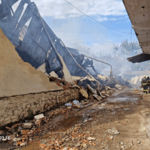 Loja Fermaq, no Bairro Rio Verde, foi completamente consumida pelo fogo na noite de quinta-feira (7). Um incêndio de grandes proporções destruiu a loja Fermaq